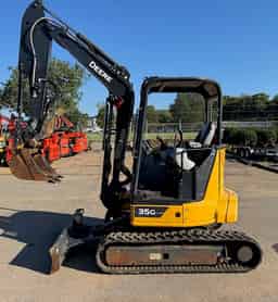 Open station, Hydraulic thumb, 12″, 18″, and 36″ smooth bucket.