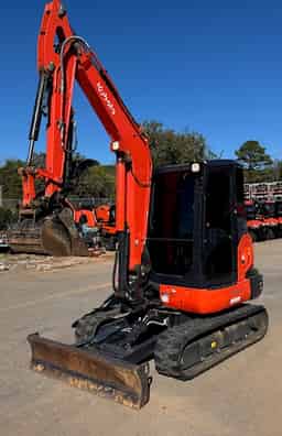 Cab, Angle blade, Hydraulic thumb, 24″ bucket